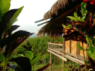 A une vingtaine de kilomètres de la ville de Chiang Rai, se trouve un petit cocon isolé qui porte bien son nom, le "Bamboo Nest". Niché entre les montagnes du Nord de la Thaïlande, on y accède par un chemin vertigineux et caillouteux, juste avant de pouvoir découvrir le secret bien gardé: quelques bungalows en Bamboo entièrement construits à la sueur du front des bricoleurs. On s'y aventure. A l'instant où nos pieds font leurs premiers pas dans le bungalow, nous ne touchons plus terre. D'ailleurs, on distingue le sol à quelques mètres à travers les lanières de bambou alignées. Le loquet en bois de la porte du balcon se défait doucement, laissant la porte tressée s'ouvrir peu à peu dans un grincement mélodieux, pour dévoiler sous nos yeux un paysage fabuleux. Une jungle luxuriante, des rizières à perte de vue, des bananiers vert intense, et là, sur le balcon, un hamac tressé en bambou appelant à s'y installer.