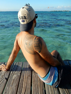 Les perles noires Tahiti et ses îles sont connues pour beaucoup de choses dont l'huile de monoï, les tatouages polynésiens, la vanille, entre autres, mais surtout les perles. Celles-ci sont fabriquées dans une ferme perlière, qu'on peut aller visiter pour en apprendre plus sur le processus très intéressant de la fabrication d'une perle à partir d'une huître. Les publicités pour des bijoux et les bijouteries sont partout, difficile de résister à aller jeter un coup d'oeil! Les prix varient considérablement selon la qualité de la perle: sa forme et sa couleur par exemple. On trouve des perles simples à moins de 10€ la pièce, mais elles ne sont pas parfaitement rondes. Pour une cinquantaine d'euros, on peut quand même avoir une jolie paire de boucles d'oreilles, un grand classique. Puis, on ajoute des chaines, des montures, des diamants et le prix augmente très, très vite! Nous avons vu des colliers de plus de 50 perles dans des bijouteries de luxe dépasser les 1 million de francs pacifiques, soit presque 10'000€. Il faut trouver la sienne, et la porter comme on l'aime: autour du cou, en simples boucles d'oreilles, sur un bracelet tressé, autour de la cheville ou encore incrustée dans un tiare dans les cheveux. Après observation, il est rare de croiser un local sans sa perle... Donc, voilà le collier qui m'a tapé dans l'oeil, 3 perles aux couleurs variées sur un fin fil de soie: