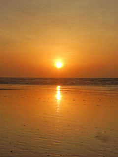 Ce matin, c'est plage! C'est beaucoup plus agréable de se poser sur le sable en face de l'océan, avec le vent qui souffle et nous fait oublier la chaleur. Mais c'est pas évident de rester longtemps! Après une bonne salade, on part voir la pedra furada, ce gros rocher troué au bord des vagues. La ballade est très jolie, elle longe l'océan, traverse de belles plages isolées. Enfin, on arrive juste à temps pour le coucher du soleil, qu'on contemple depuis le haut d'un rocher.