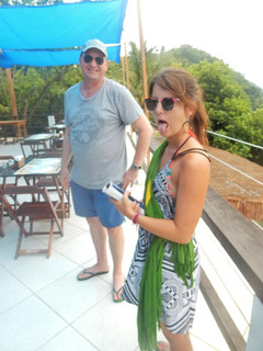 Le lendemain, on fait route vers la plage Barra do Sahy d'où la vue est plutôt incroyable. On longe ensuite la côte et même si le temps est un peu gris aujourd'hui, il fait chaud et les brésiliens ont tous sorti les parasols et les serviettes de plage. Le soir, nos hôtes nous ont réservé une surprise de taille, que peut-être seuls des backpackers en tour du monde depuis 11 mois et 2 semaines pourraient comprendre: un post-repas de Noël avec du foie-gras, du champagne et du chocolat suisse. On apprécie d'autant plus d'ailleurs! On est donc super heureux de pouvoir fêter avec eux et on se régale. Henry et Anne-Laurence préparent des caïpirinhas aux fruits de la passion avec de la cachaça et ensuite vient un deuxième cocktail préparé avec ce même alcool mais mélangé à du lait de coco: batida de coco. WOUAAA! C'est tellement bon qu'on enchaîne les verres à moitié dans la piscine pour contrer la chaleur.