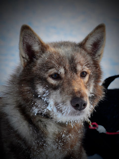 Malgré le froid extrême qu'on subit actuellement, car les températures de -20 degrés se ressentent comme -30 degrés, voire pire, ce qu'on vit efface tout le négatif. Mon écharpe est totalement congelée, on dirait un bloc de glace. Mes doigts de pied ne bougent quasi plus, je dois faire des sauts sur mon traineau pour les réveiller. Quant aux bouts de mes doigts, je dois les presser contre mes chaufferettes sous mes gants et essayer de continuer à m'agripper à mon traineau. J'ai une barbe de neige. Mes cils sont blancs. Des larmes coulent de mes yeux et se transforment en stalactites aussitôt. J'avoue, c'est marrant ^.^