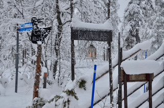En hiver, le village d'Äkäslompolo est prisé par les skieurs et les voyageurs venus profiter des activités hivernales de la région. La station d'Ylläs offre un bon réseau de pistes de ski, raquettes et ski de fond. Depuis le centre du village, on peut d'ailleurs voir la dernière piste éclairée par de grands spots. Par temps couvert, on dirait que ces lumières flottent dans le ciel, de quoi s'imaginer le traineau du père-noël tiré par des rennes :-)