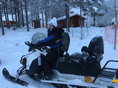 Ce lundi matin, on enfile nos combinaisons spéciales froid extrême, gentiment prêtées par l'agence "destination Lapland", avant de monter sur ce qui a remplacé les trajets en renne aujourd'hui: la motoneige!! La conduite s'assimile rapidement, il suffit de rester sur les "tracks" de la motoneige précédente et de toujours garder le contrôle de l'accélérateur. Pas le temps de penser au froid, il y a même des poignées ultra chauffantes pour pas se congeler le pouce. Avec ça, on pourrait partir pour une rando-motoneige de plusieurs heures! La conduite sportive et les bosses ça tient même assez chaud.